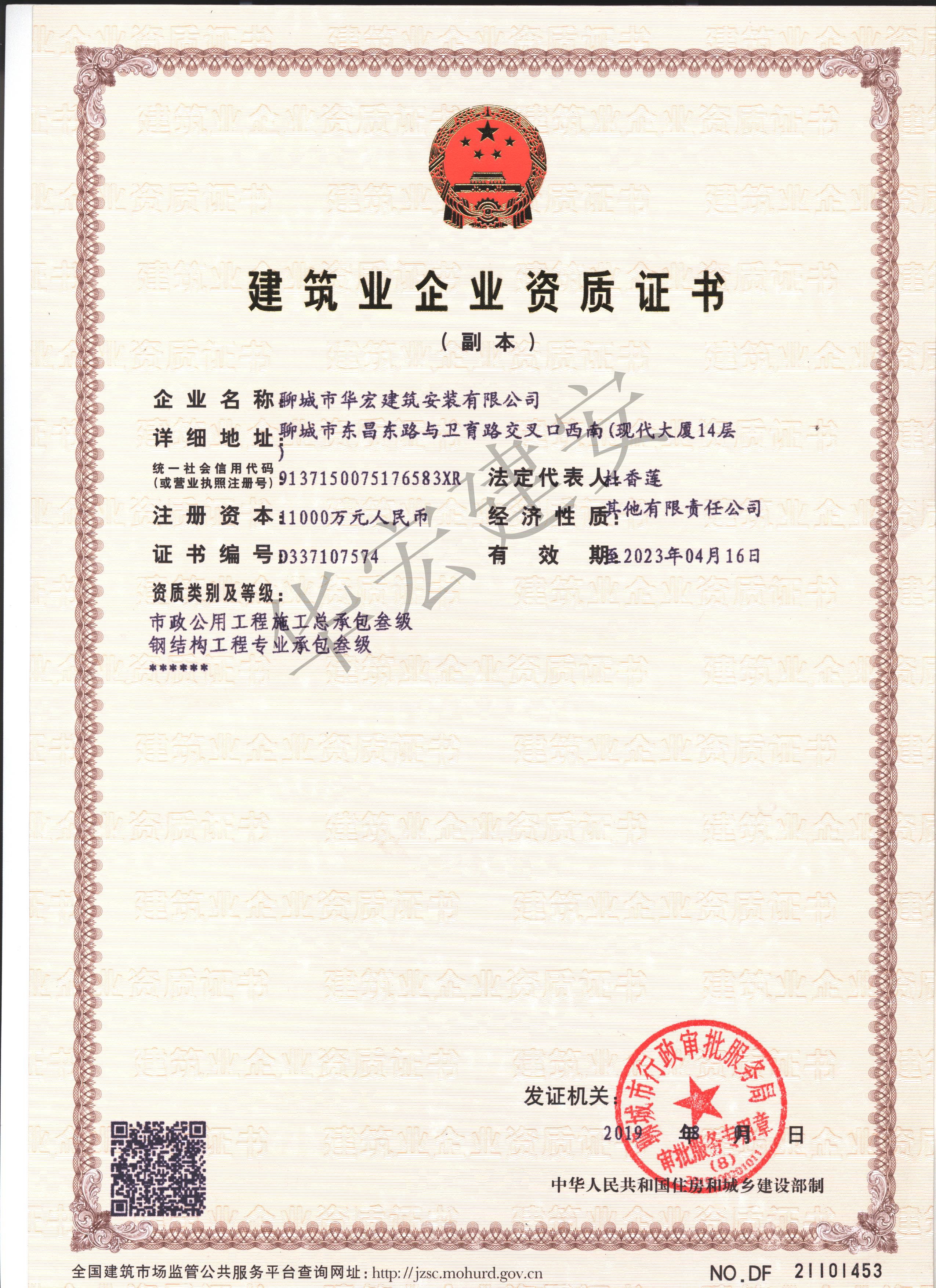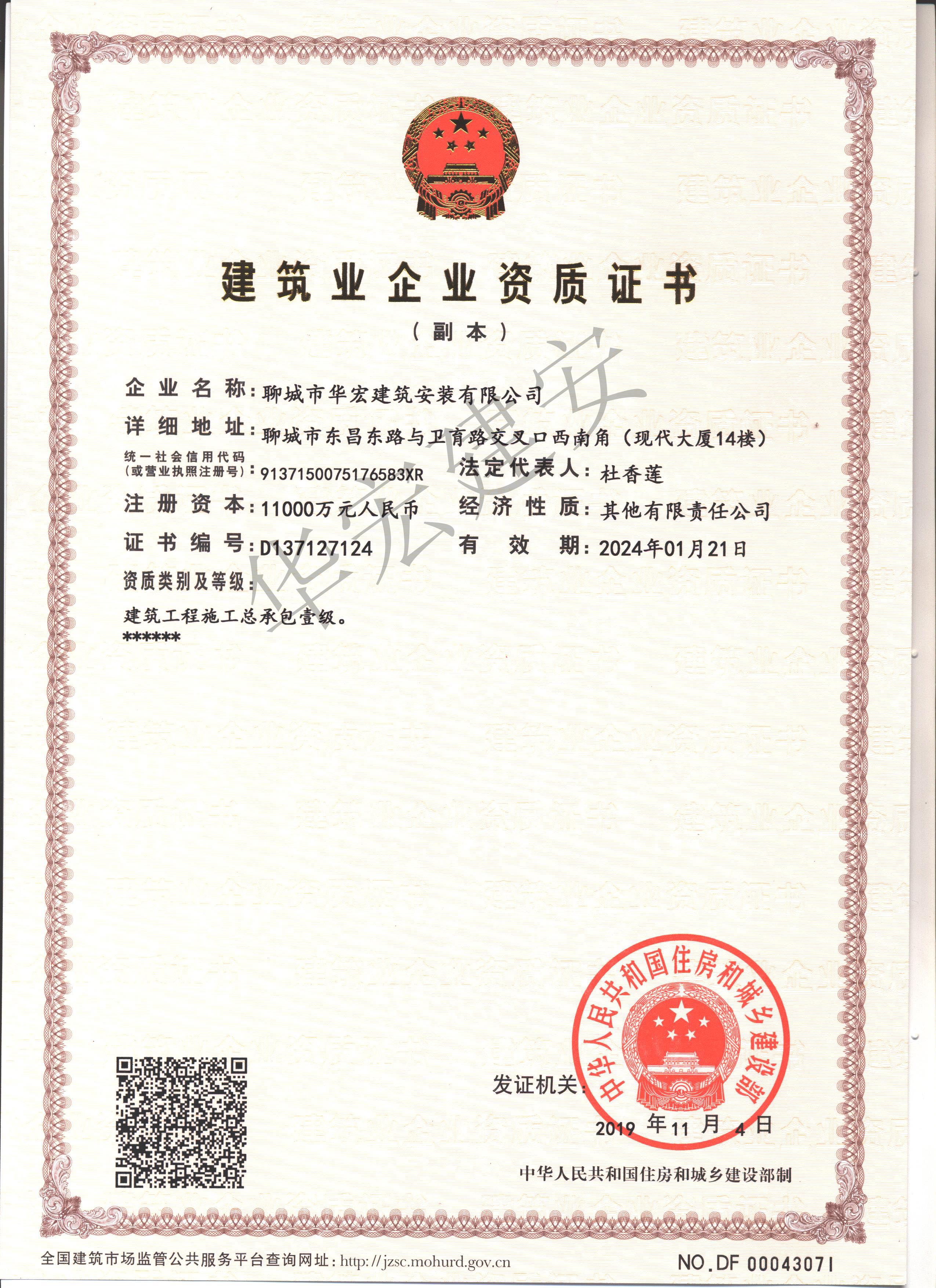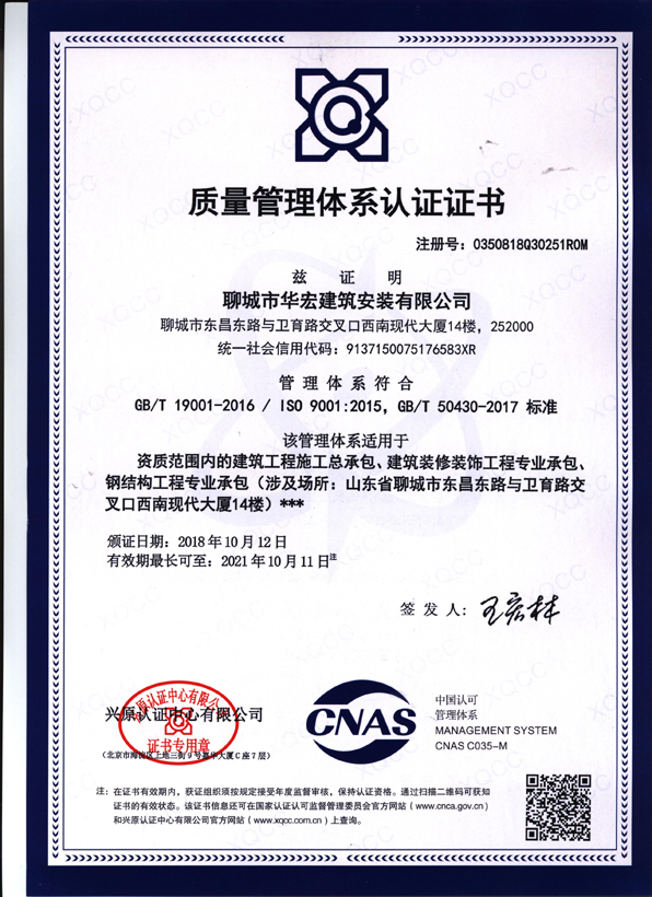 聊城市華宏建筑安裝有限公司成立于2002年5月,公司自2002年成立以來,不斷發(fā)揚(yáng) “敬業(yè)修身 打造精品 開拓創(chuàng)新 弄潮勇進(jìn)”的創(chuàng)業(yè)精神,始終遵循“以質(zhì)量求生存、靠精品創(chuàng)品牌、憑信譽(yù)贏市場(chǎng)”的宗旨,認(rèn)真奉行“科學(xué) 高效 一流”的質(zhì)量方針